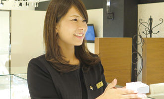 ブライダルリングの販売を担当させて頂いて5年目になります。最初はお客様より私の方が緊張してしまうこともありましたが、先輩のアドバイスや経験を踏んで喜びを分かち合う接客が出来るようになりました。